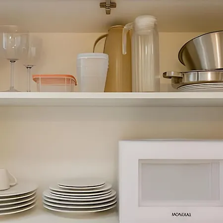 Enhance your stay with Apto 1 Quarto No Centro Piscina Gym E Coworking apartment's a full kitchen, furnished with a refrigerator and kitchenware for your comfort.